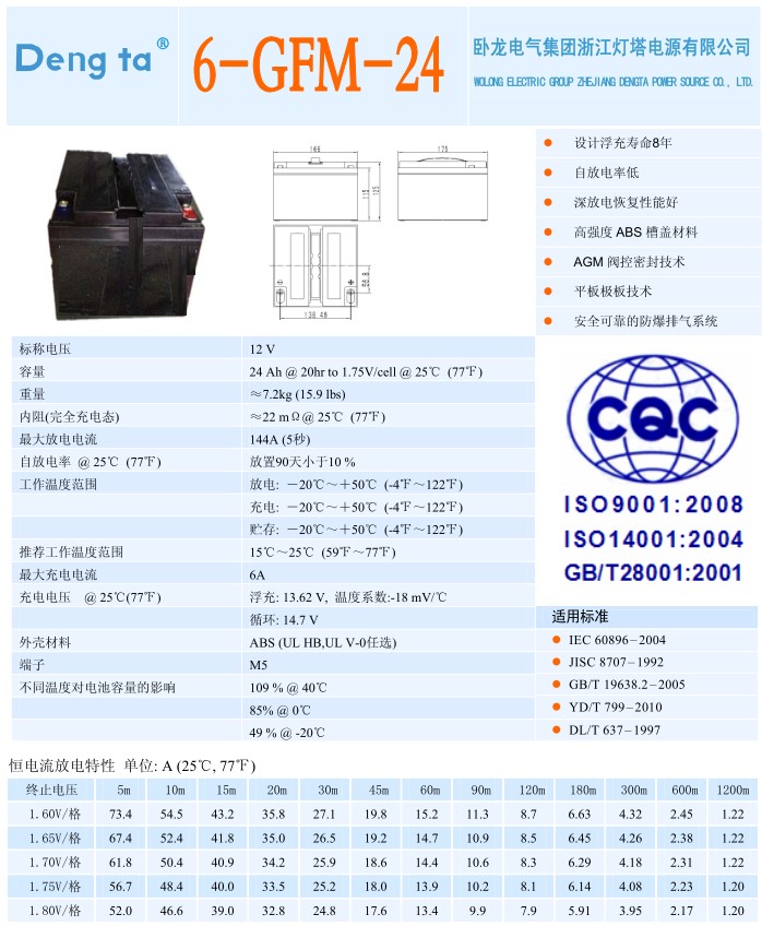 燈塔蓄電池6-GFM-24U(12V24AH)