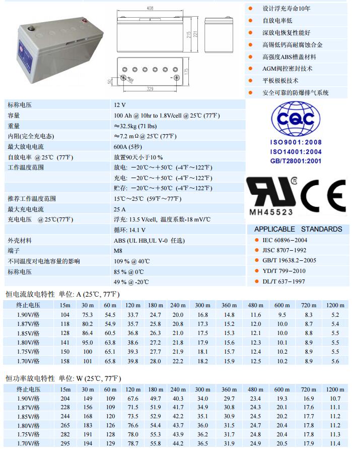 燈塔蓄電池6-GFM-100U(12V100AH)